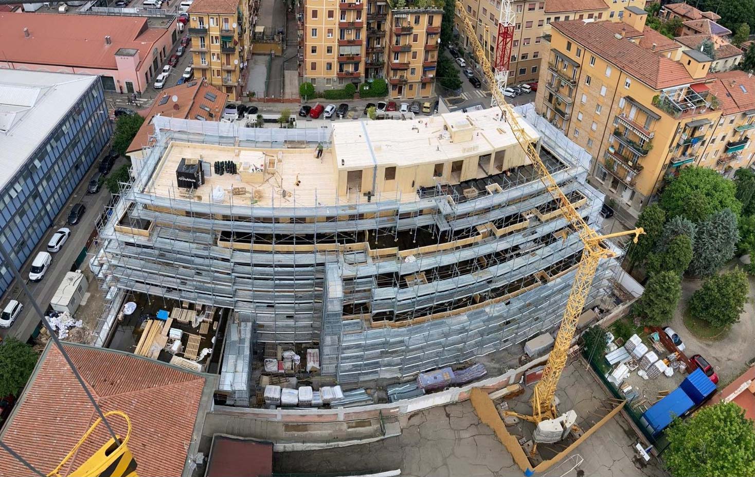 A representative example is the XLAM Dolomiti project in Rovereto, Italy: the design, supply, and installation of the country’s tallest timber building, featuring 9 floors plus an additional 5 floors in an adjacent building. This project demonstrates the real-world reliability and potential of CLT for large-scale applications, combining innovation, safety, and architectural quality.