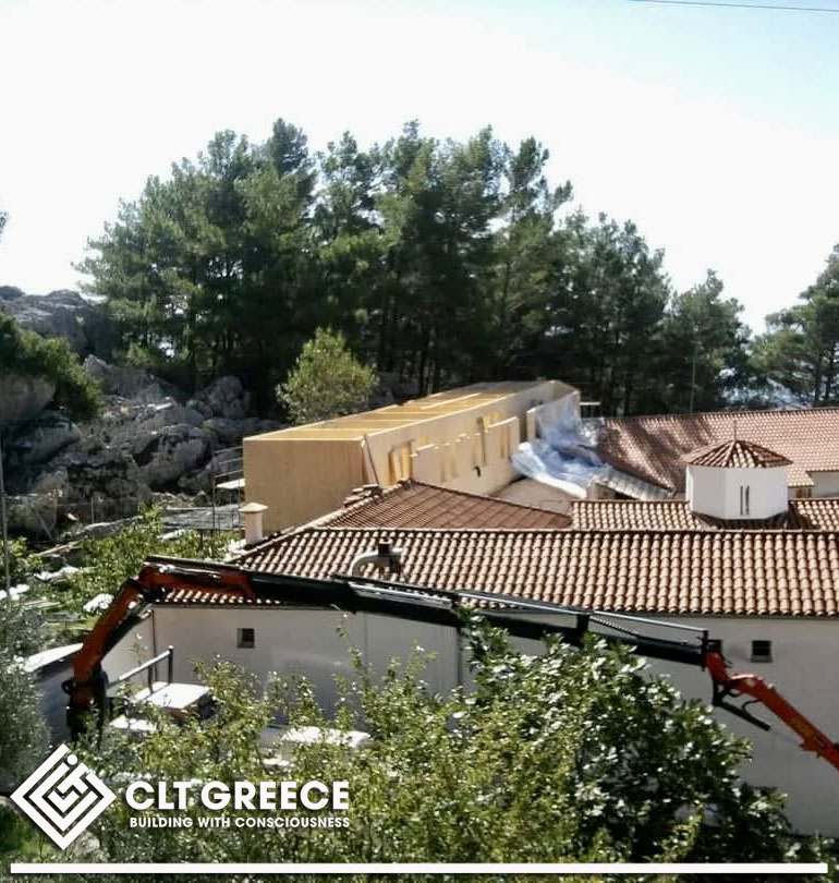 Yet, in 2011, the company AFOI KARAMPELA A.E.B.E., in collaboration with @keskos_building, completed the construction of a new wing for monastic accommodation using mass timber (CLT). The building is two stories high, 27 meters long, 8 meters wide, and 216 sq.m. per floor. The impressive part? It was completed in just 50 days!